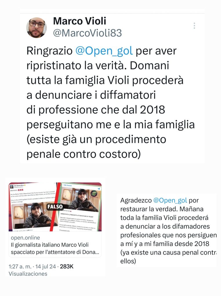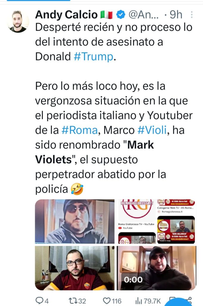 16 de julio de 2024Al parecer, las autoridades estadounidenses etiquetaron al periodista italiano @MarcoVioli83 como el supuesto el tirador abatido que intentó asesinar al expresidente Donald Trump.